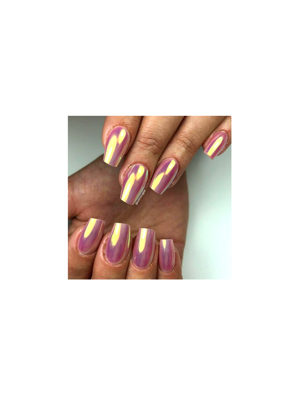 - S priloženim aplikatorejem Chrome svinčnika vtrite chrome prah na noht ter ponovno sušite v UV/LED lučki 40sek.
